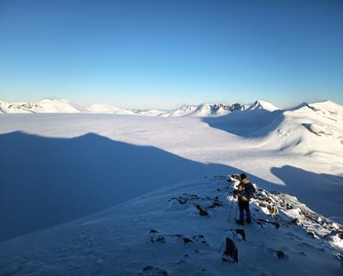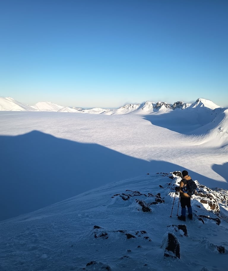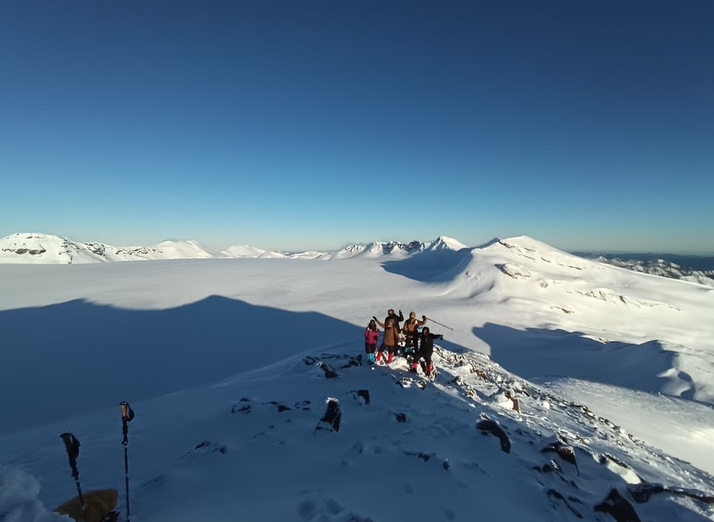 Cumbre norte: Vista panorámica del glaciar y volcanes cercanos como Llaima y Villarrica.
